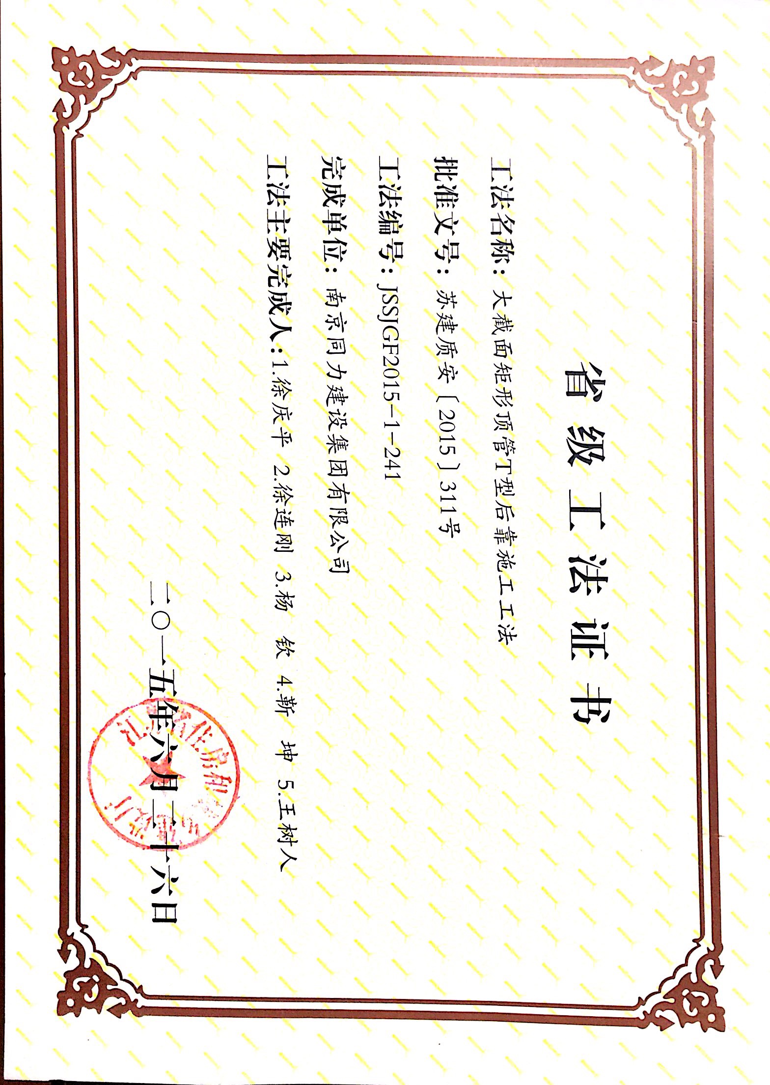 大截面矩形顶管T型后靠施工工法获得“省...