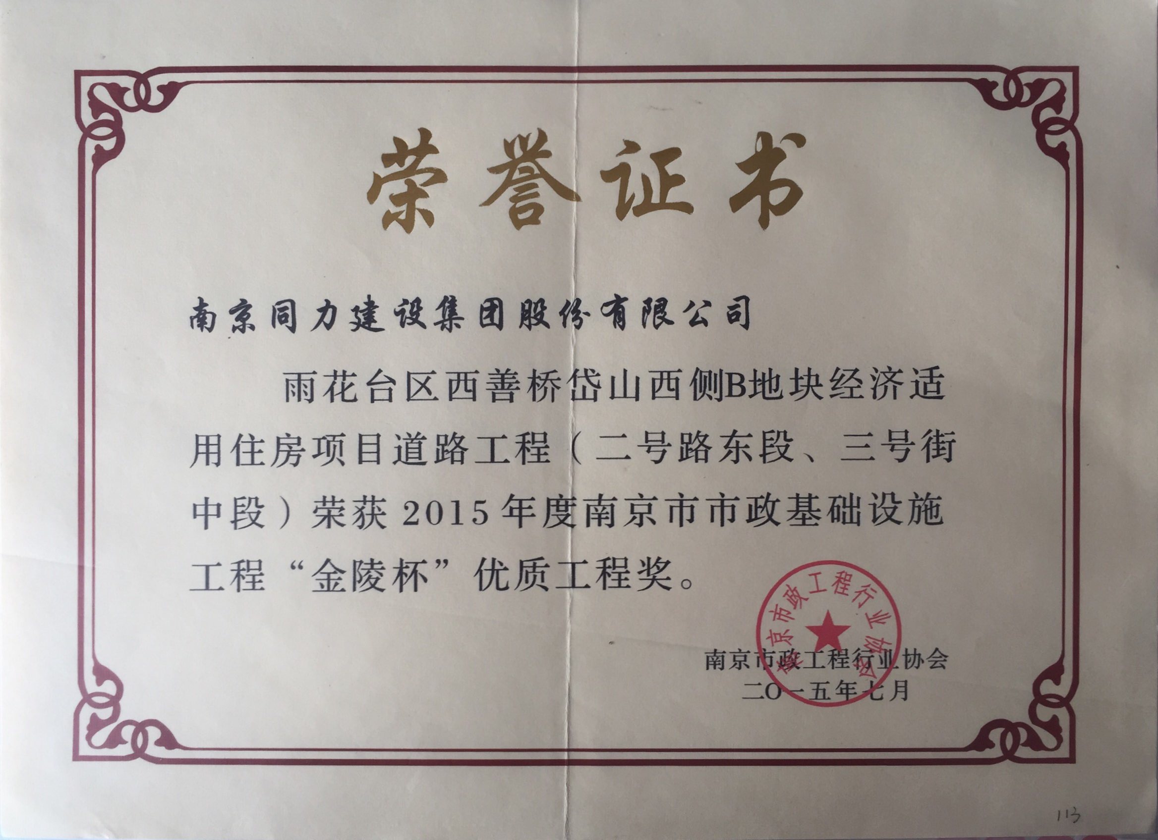 晓庄广场隧道项目工程获得“金陵杯”优质...