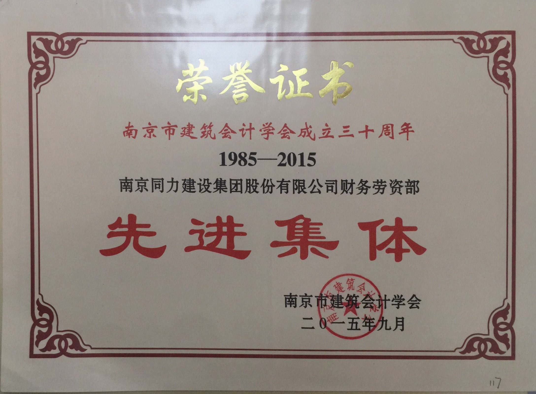 财务劳资部被评为南京市建筑会计学会成...