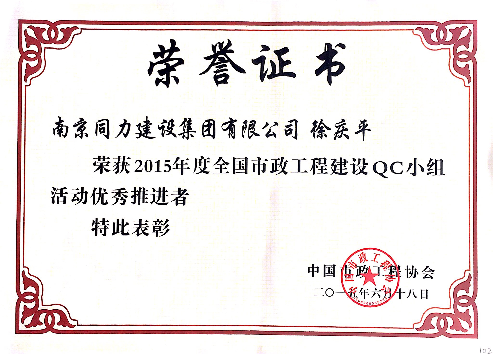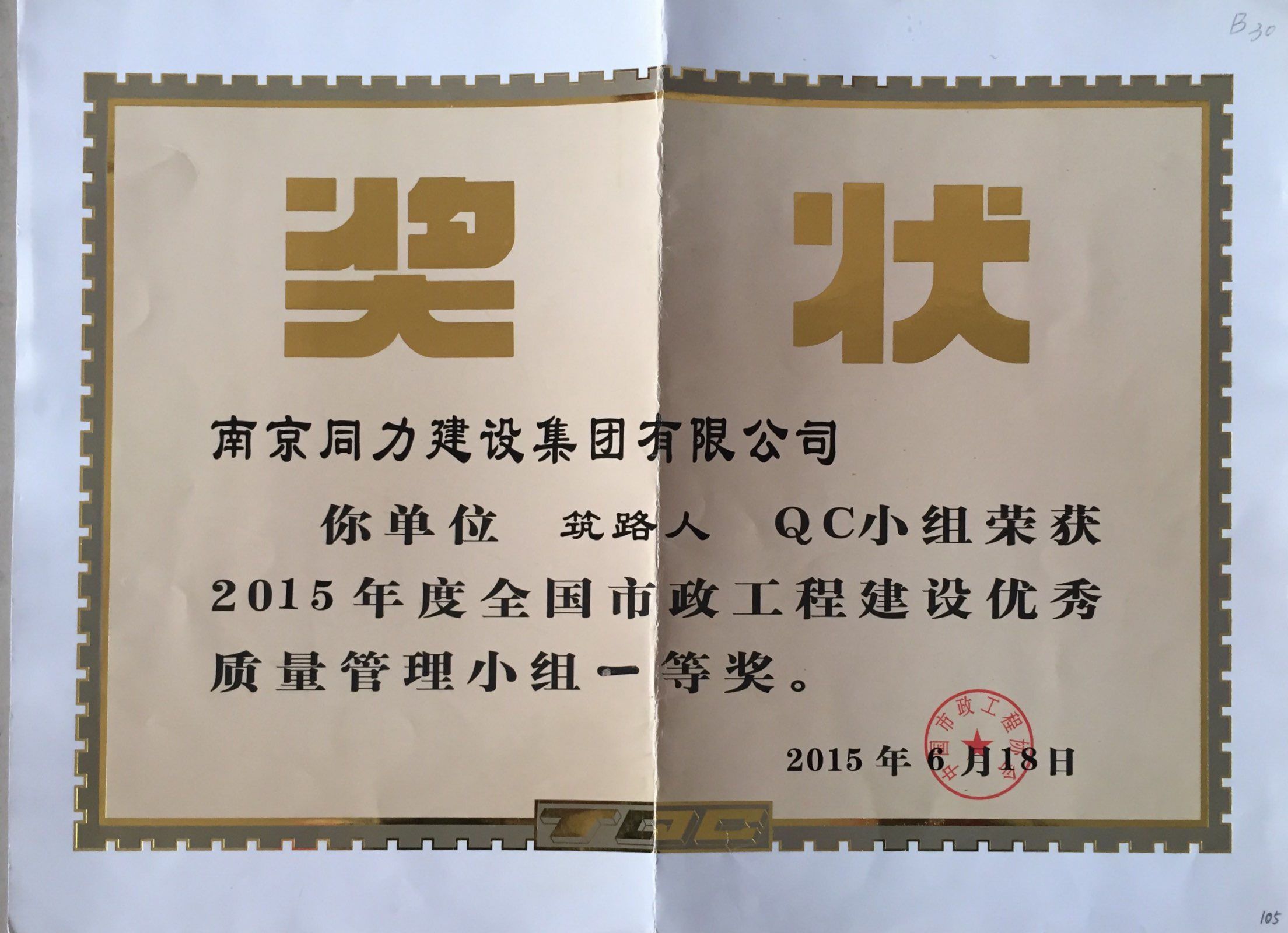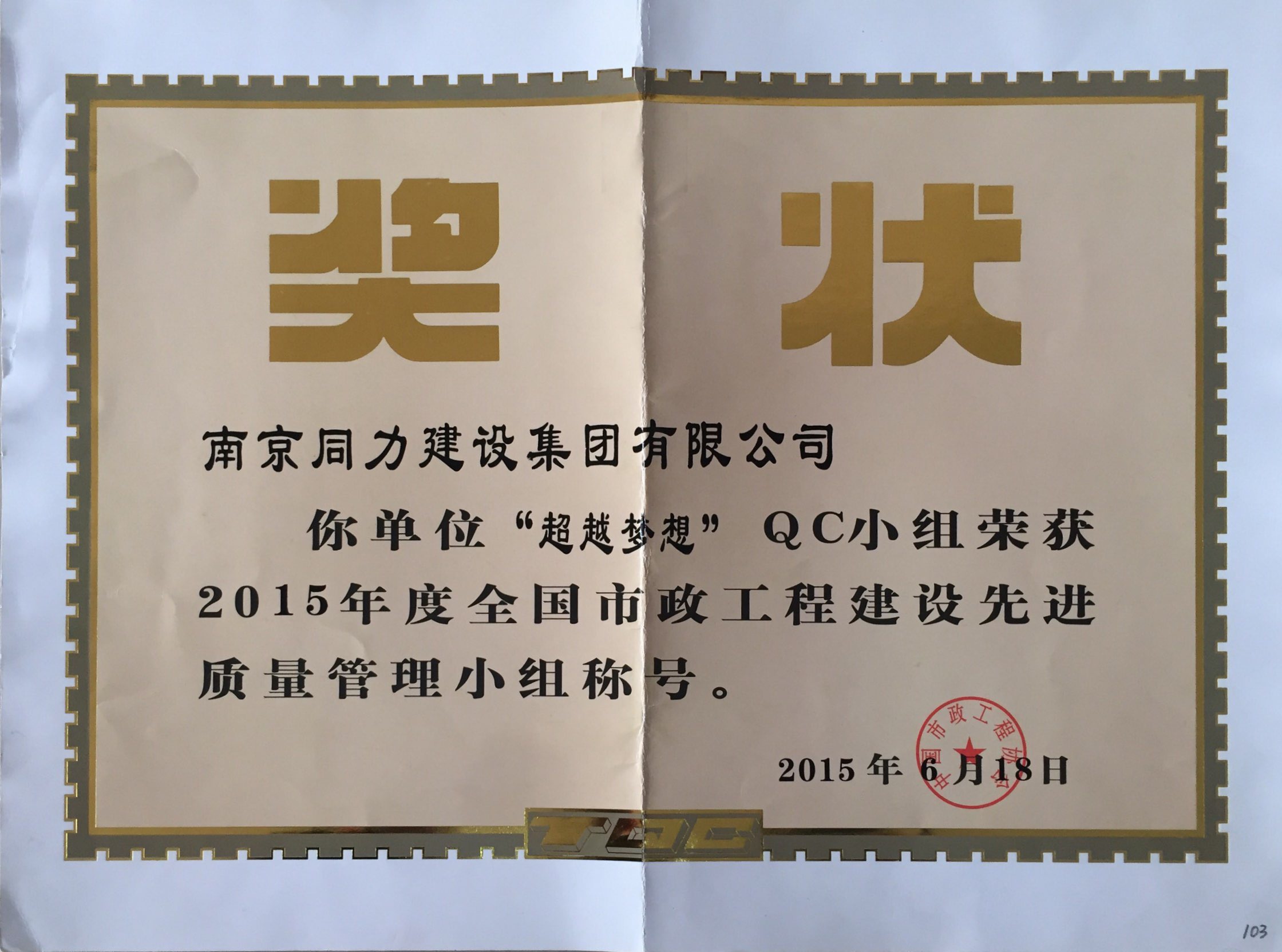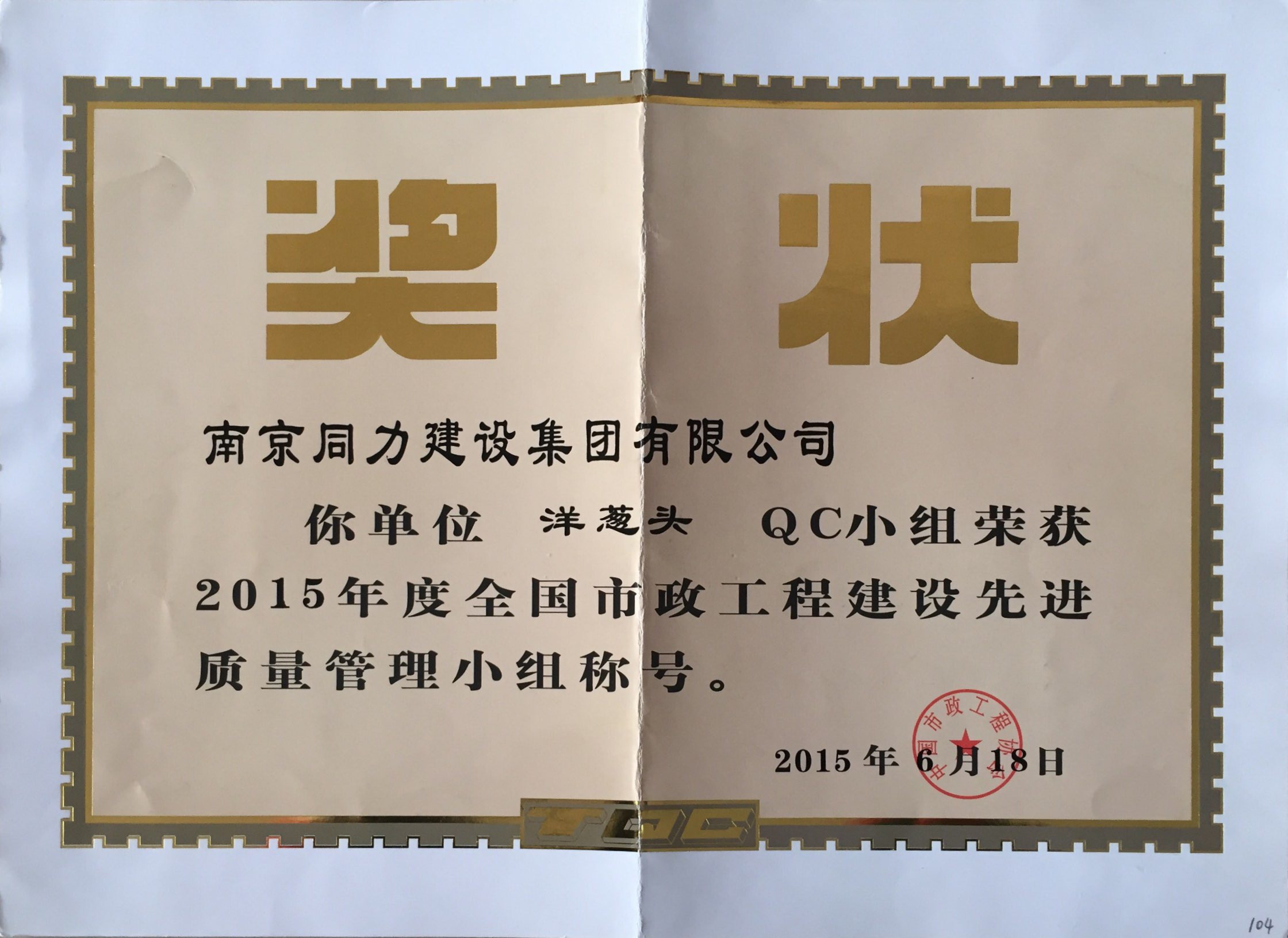 公司“洋葱头”QC小组荣获2015年度全国市...