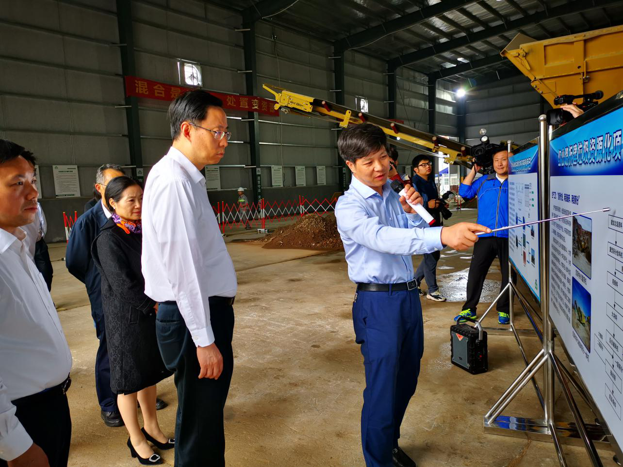 5月30日下午3点,南京市市长蓝绍敏、副市长邢正军、市政府秘书长翁国玖、办公厅主任闵一峰、副秘书长王承江及市建委、市城管局、玄武区主要领导一行来到红山路建筑垃圾资源化利用项目,城建集团总经理李雁、党委副书记邹锐、建管集团总经理韦勇、环境集团总经理王福喜、时博官方网站建设总经理方伟陪同视察组。