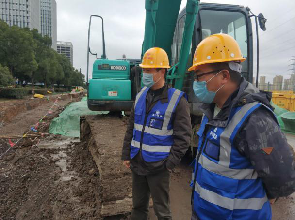 疫情期间,江北共建中心及质监站防疫小组等相关领导针对浦滨路项目部指导检查工作,在对疫情防防控物资准备、宣传标语及开复工等工作给予了一致的认可。