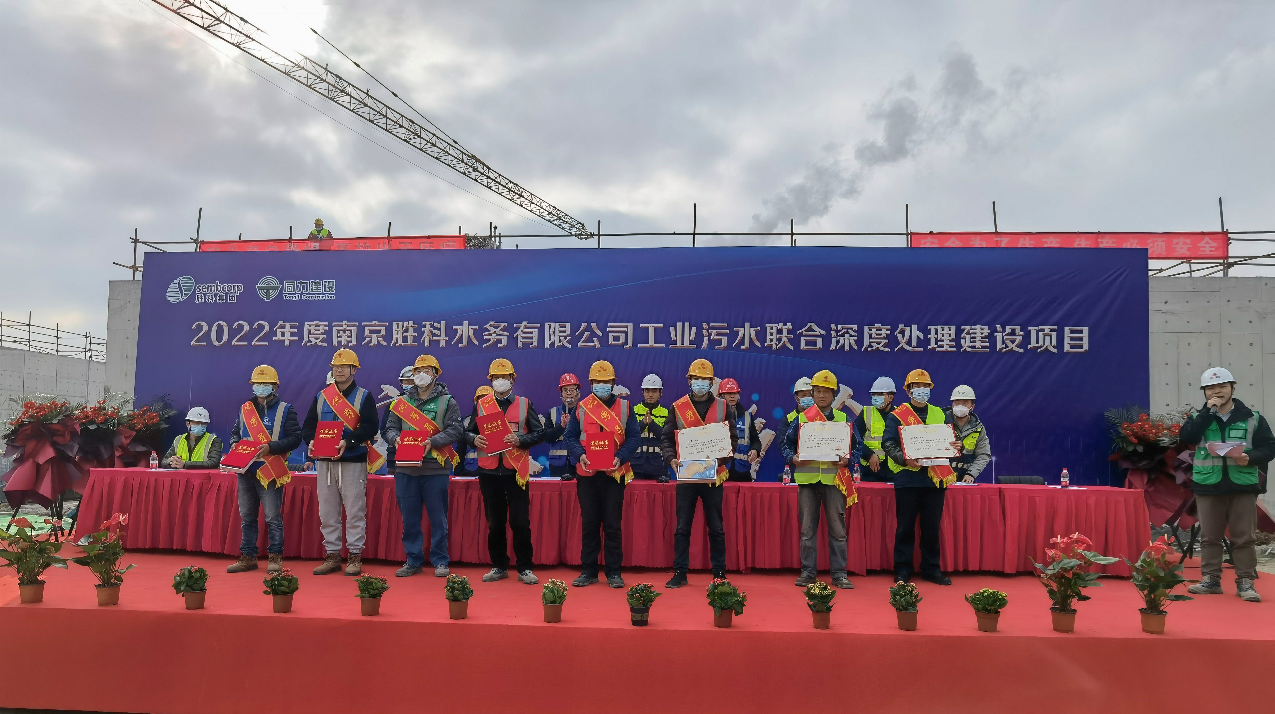 大会宣读《关于2022年度南京胜科水务有限公司工业污水联合深度处理建设项目安全表彰人员名单》,共计8人,并对现场所以参建工作者给予奖励,参会领导给予获奖人员颁发荣誉证书及奖品。